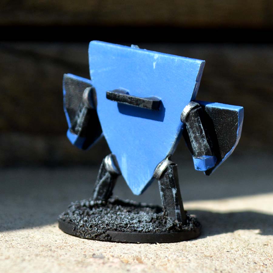The idea for this one came in a dream (yes, making dudes has gotten that bad!). I saw this one clearly, with its shield-shaped body and its arms holding two shields. He didn’t carry any other weapons, and his role was to stop everything that wanted to get past.